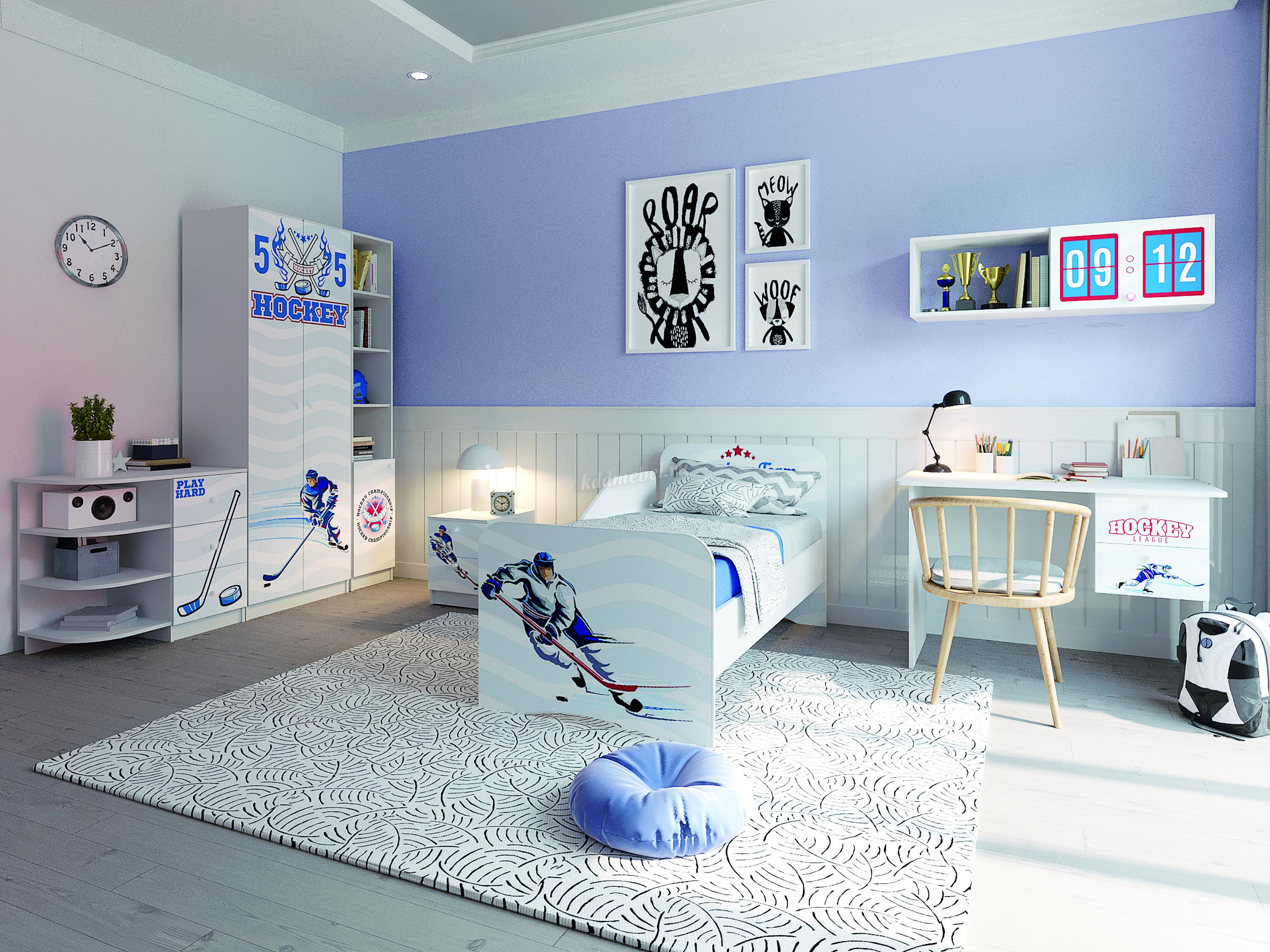 Кровать Смарти-2 (Белый/Фотопечать Хоккей) наличие товара: