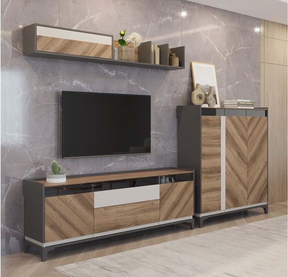 Мебель в гостиную изготавливается из материалов с тиснением натурального дерева, которое