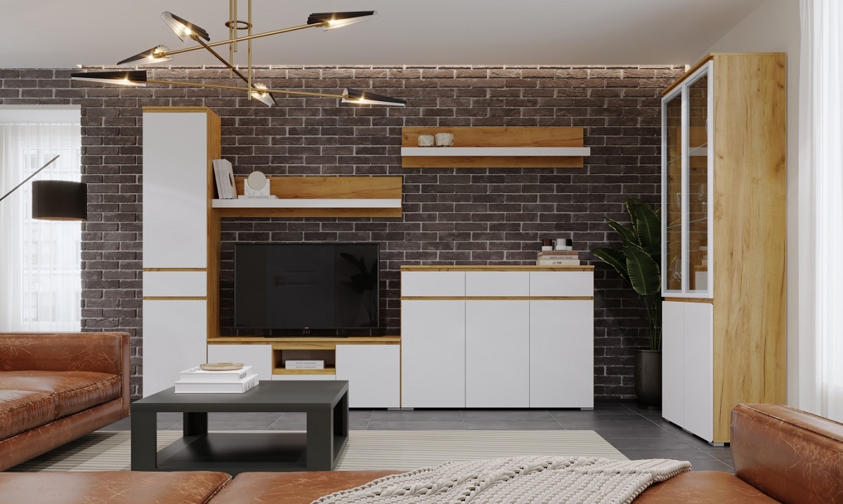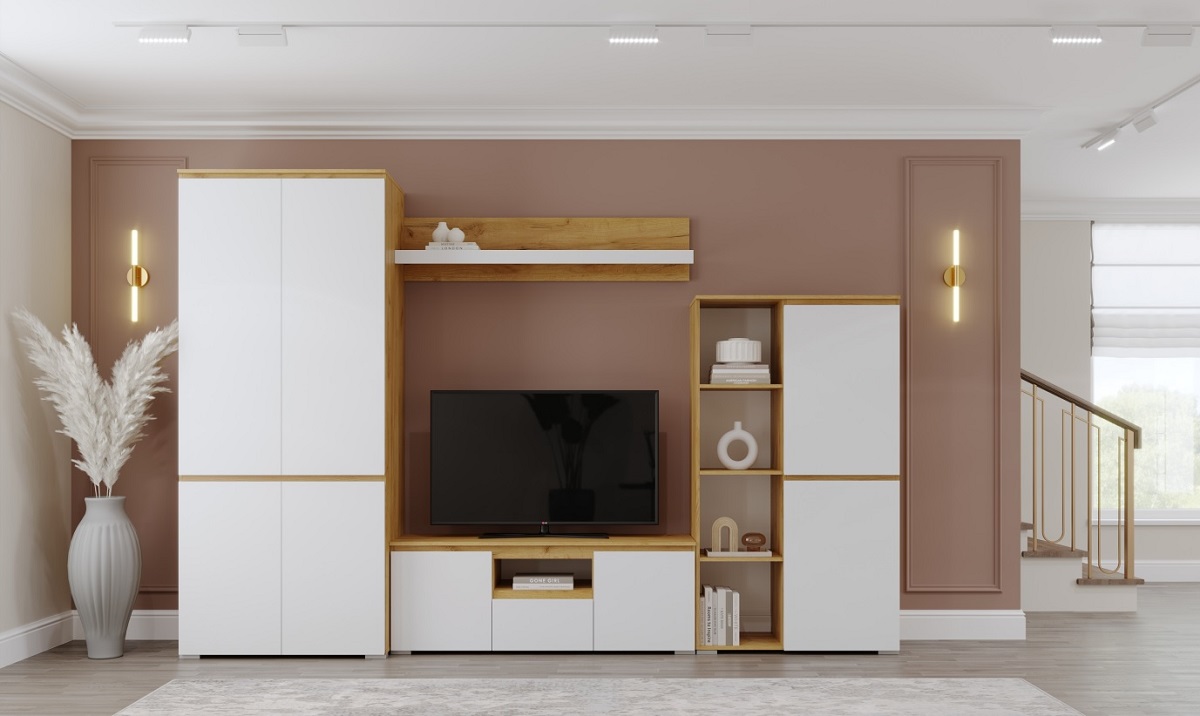 Модульная гостиная Гретта (Дуб крафт золотой/Белый)