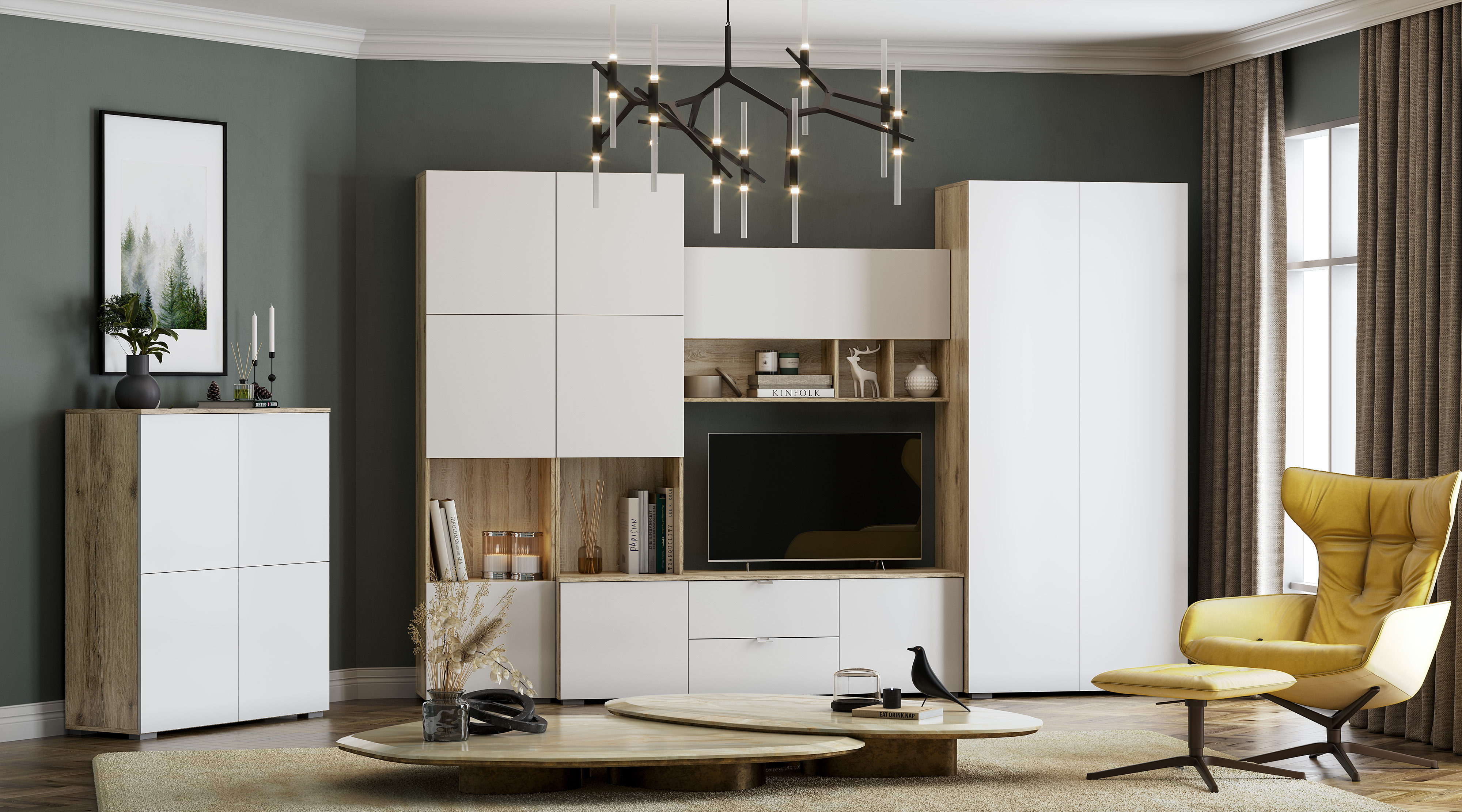 Лаконичная и стильная стенка Милан в современных оттенках станет центральным элементом в Вашей гостиной.