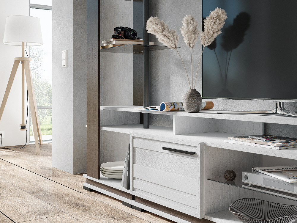 Модульная коллекция Модена содержит в себе все характеристики стильной и функциональной мебели для Вашей гостиной. Мебель выполнена из высококлассного ЛДСП в декоре ясень анкор светлый, декорированным вставками из МФД цвета венге. Разнообразие модулей, материал с тиснением дерева, строгость линий и форм, привлекательная лицевая фурнитура - это еще не все преимущества, которыми обладает Модена. Выберите свой уникальный комплект и наслаждайтесь уютом и комфортом долгие годы.