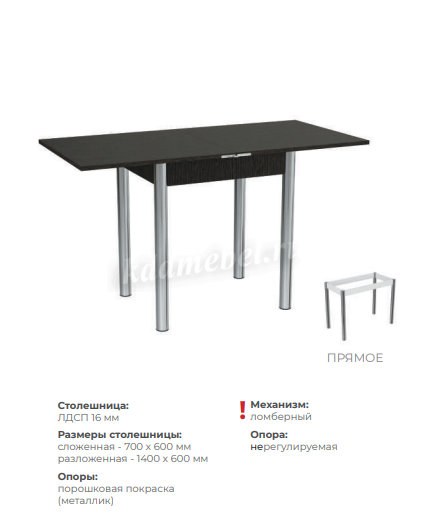 Описание Стол обеденный Виста Лайт раскладной (Венге)