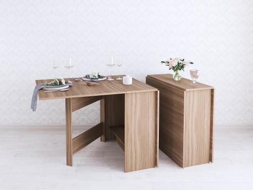 Стол имеет 3 положения: полностью сложенный, разложенный наполовину или полностью разложенный.