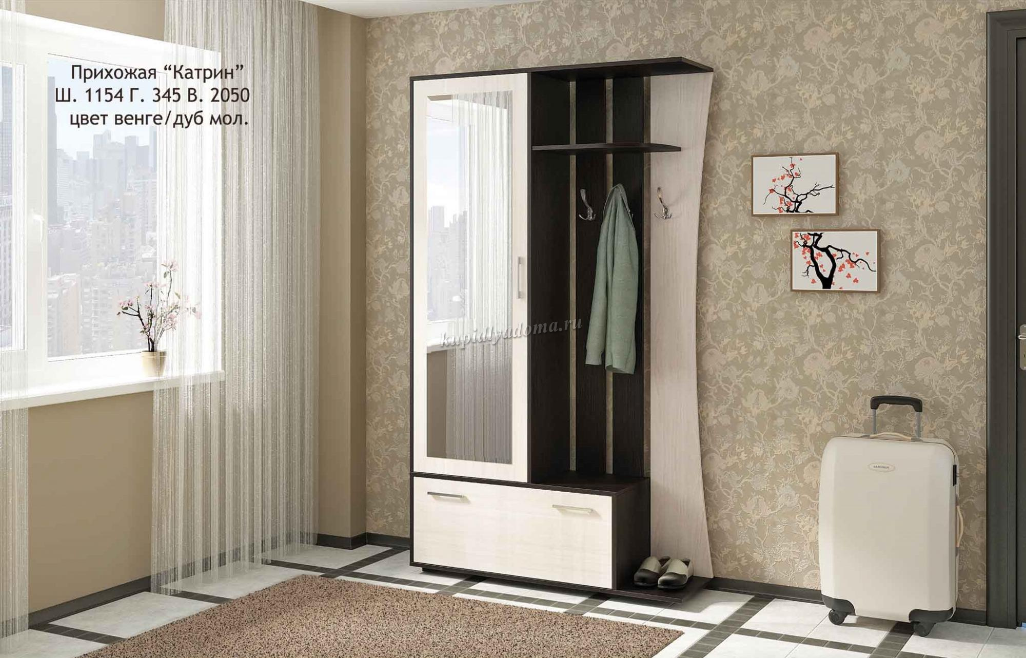 Прихожая Катрин – надёжная и эстетичная мебель, идеально подходящая для небольших передних или коридоров, оформленных в любой стилистике. Функциональная конструкция даёт возможность сохранять в помещении идеальный порядок, а приятные сочетания цветов позволяют реализовывать разнообразные интерьерные решения. В эргономичной прихожей удачно подобрано всё, что необходимо для сборов на улицу. Комплектация прихожей: