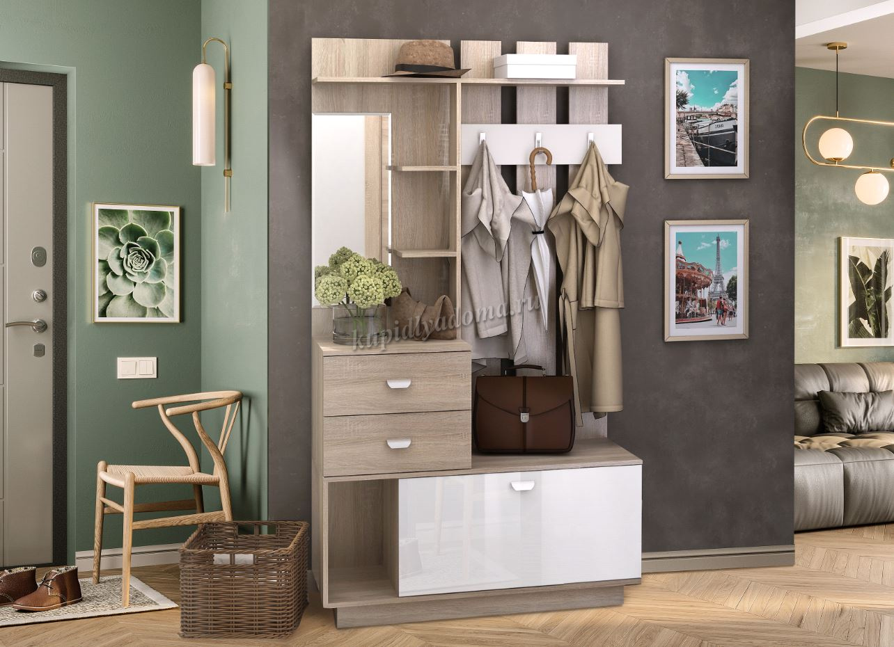 Описание Прихожая Вега (Дуб сонома/Белый глянец)