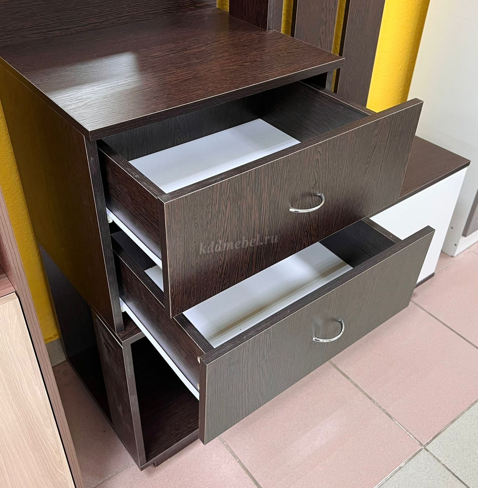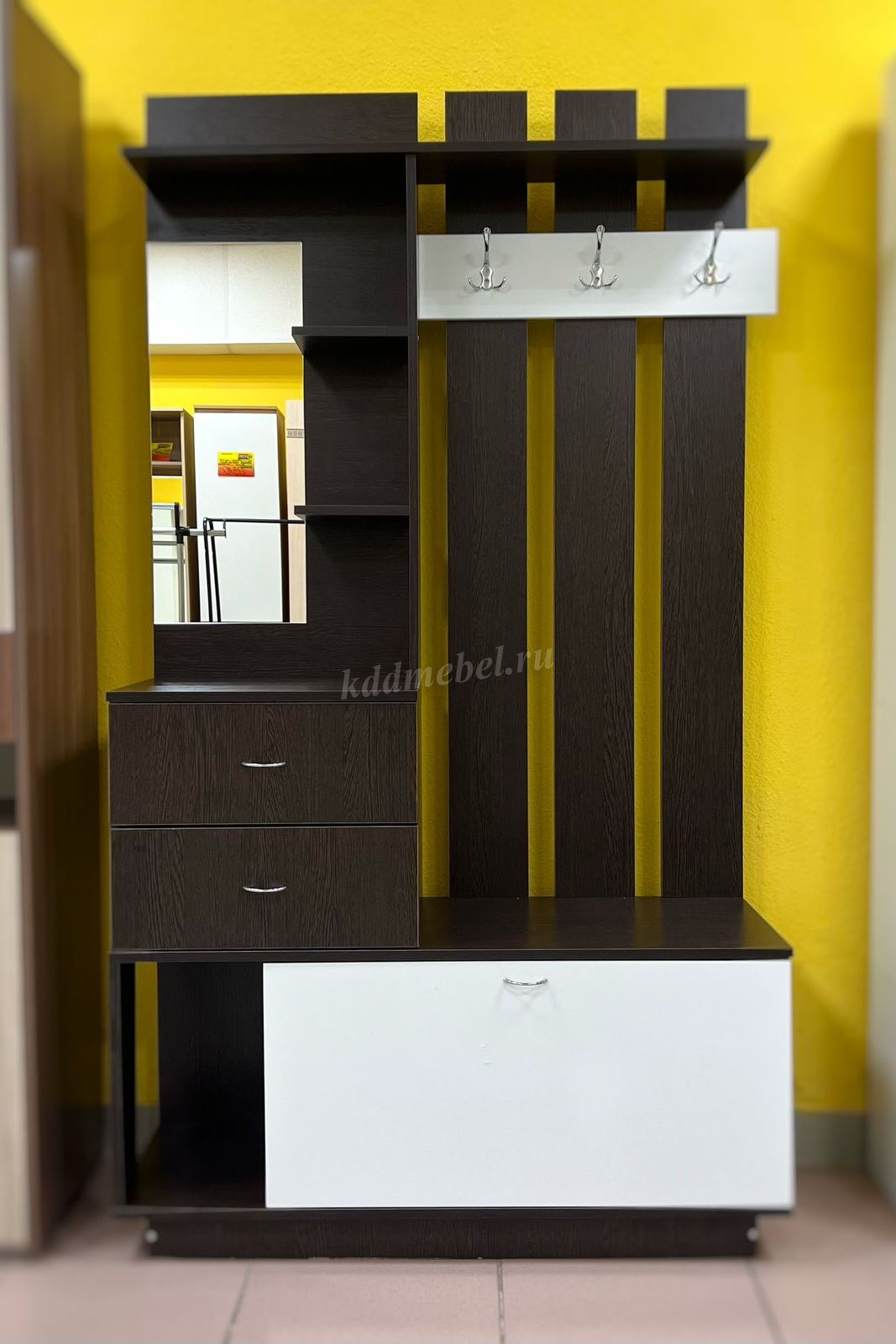 Эффективное решение для небольшой прихожей — это «Вега ». Несмотря на компактные размеры, мебель включает в себя всё необходимое для аккуратного хранения одежды и повседневных мелочей. Прихожая оснащена вместительным отсеком для обуви, ящиками, а также полками для аккуратного хранения повседневных мелочей и головных уборов.