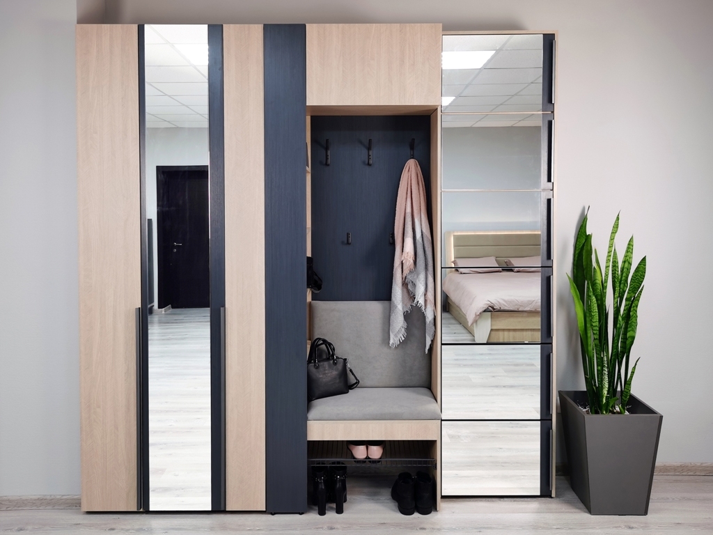 Прихожая «ПАЛЕРМО» – это новая модульная серия производства мебельной фабрики «Алисия». Выполнена в сочетании уже знакомого декора «Палермо» и нового декора «Рейн Морион», который имеет антрацитовый оттенок с металлическим отблеском и глубоким тиснением «Ферро» на поверхности ЛДСП и кромки. Декор «Рейн Морион» создан в стиле Хай-тек, такой же элегантный и холодный.