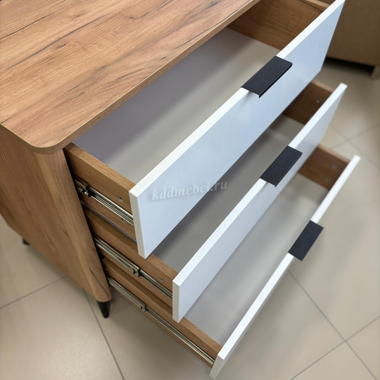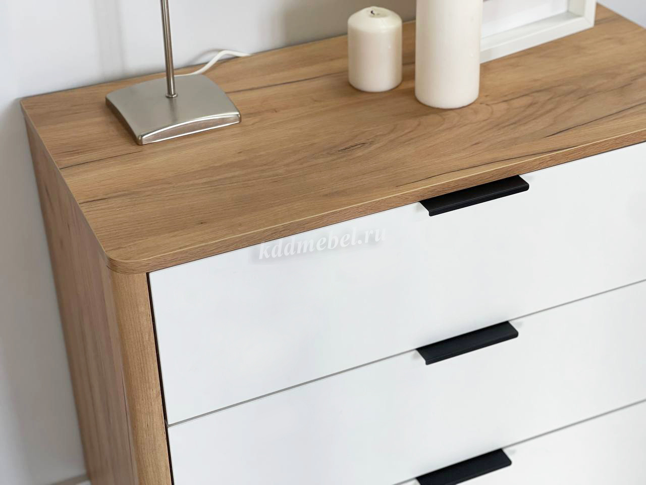 Благодаря полукруглым профилям на боковинах комода, вы легко и безболезненно обойдете углы, даже если поставите комод в самое узкое пространство.