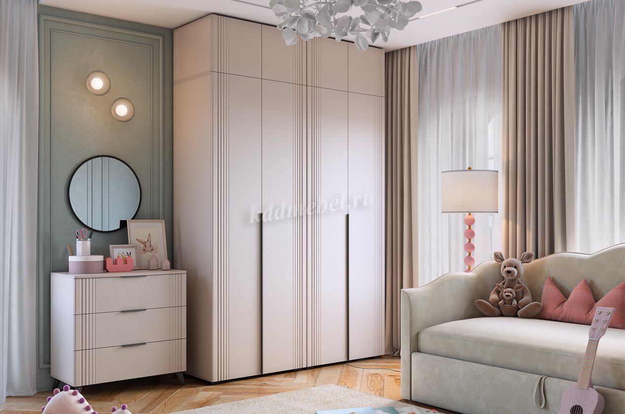Благодаря своему дизайну комод «Катрин» легко сочетается с другими модулями спальни «Катрин». Выкатные ящики предоставляют достаточно места для хранения различных предметов, что делает этот комод практичным и удобным элементом мебели.
