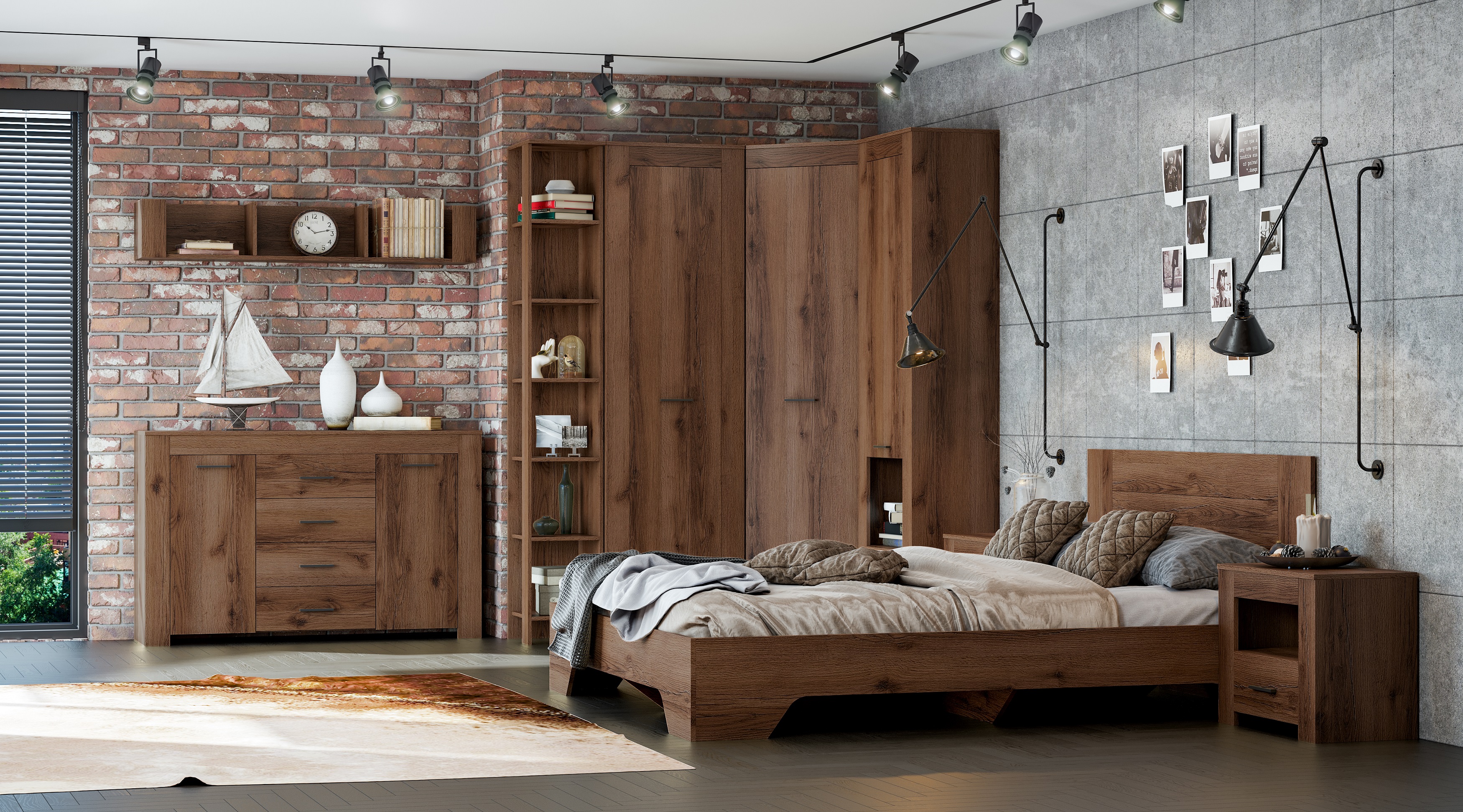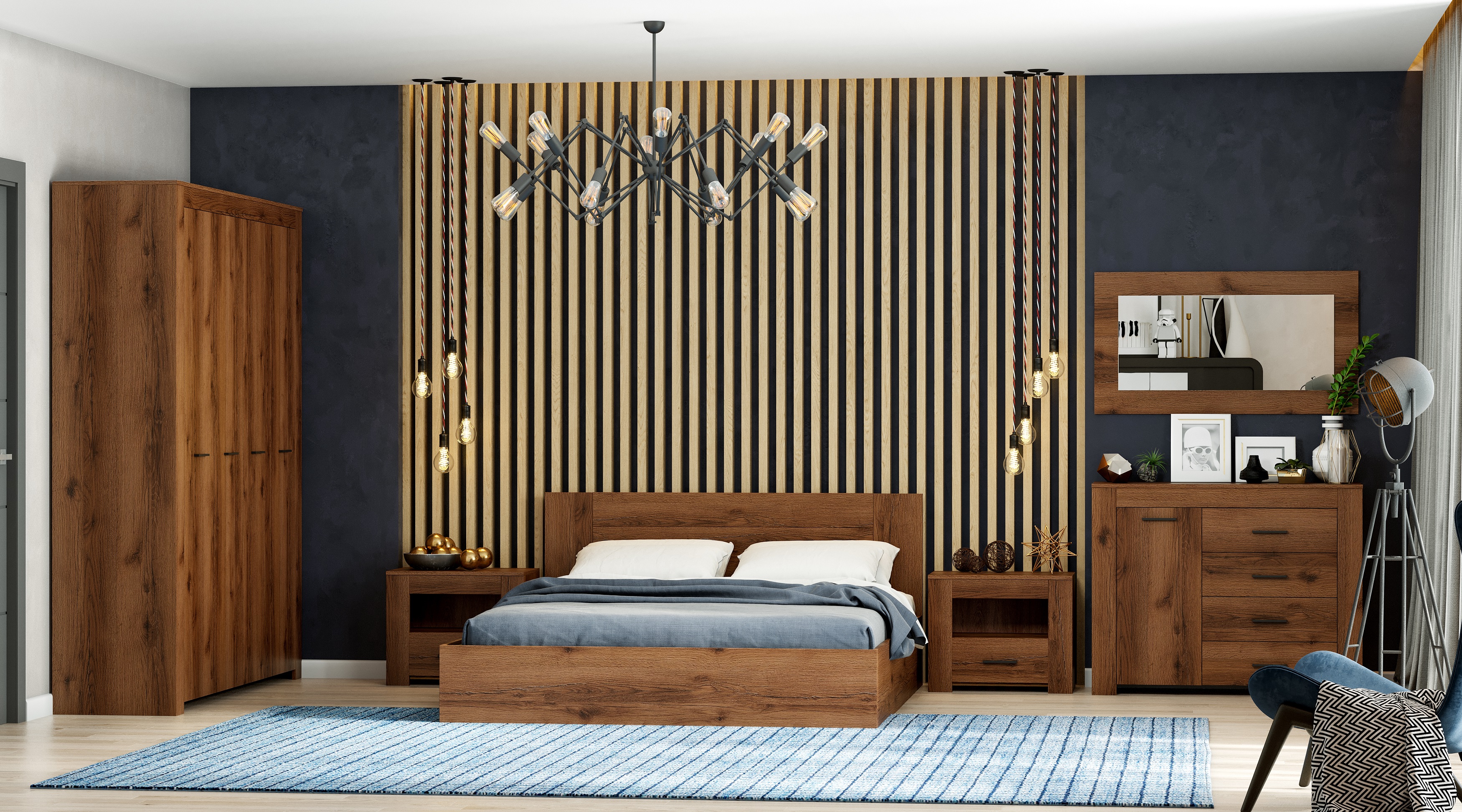 Модульная спальня Квадро (Дуб Делано темный)