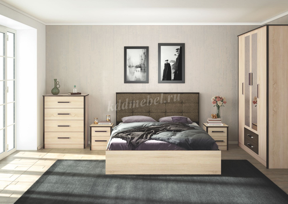 Смелое сочетание цветов и отсутствие лишних декоративных элементов - все это о спальном гарнитуре Лирика.