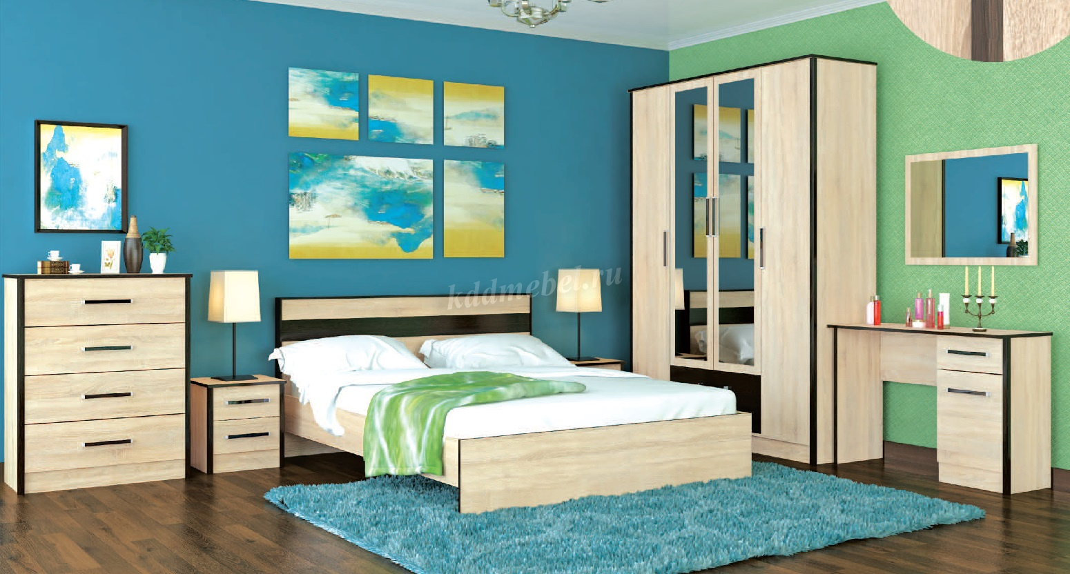 Серия комплектуется вместительым 4-створчатым шкафом с выдвижными ящиками.