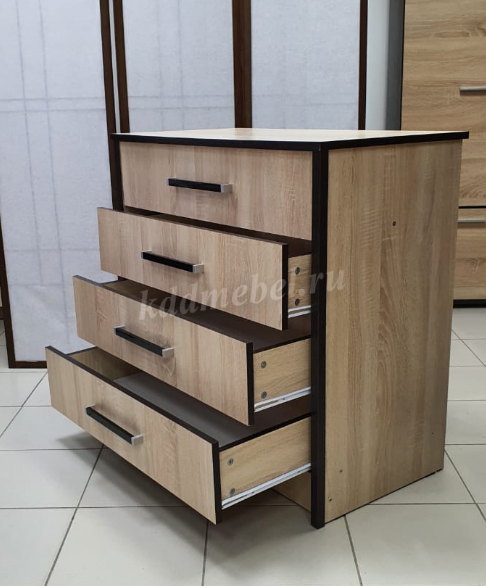 Ответ : Здравствуйте Маргарита. На выдвижных ящиках комода установлены роликовые направляющие.