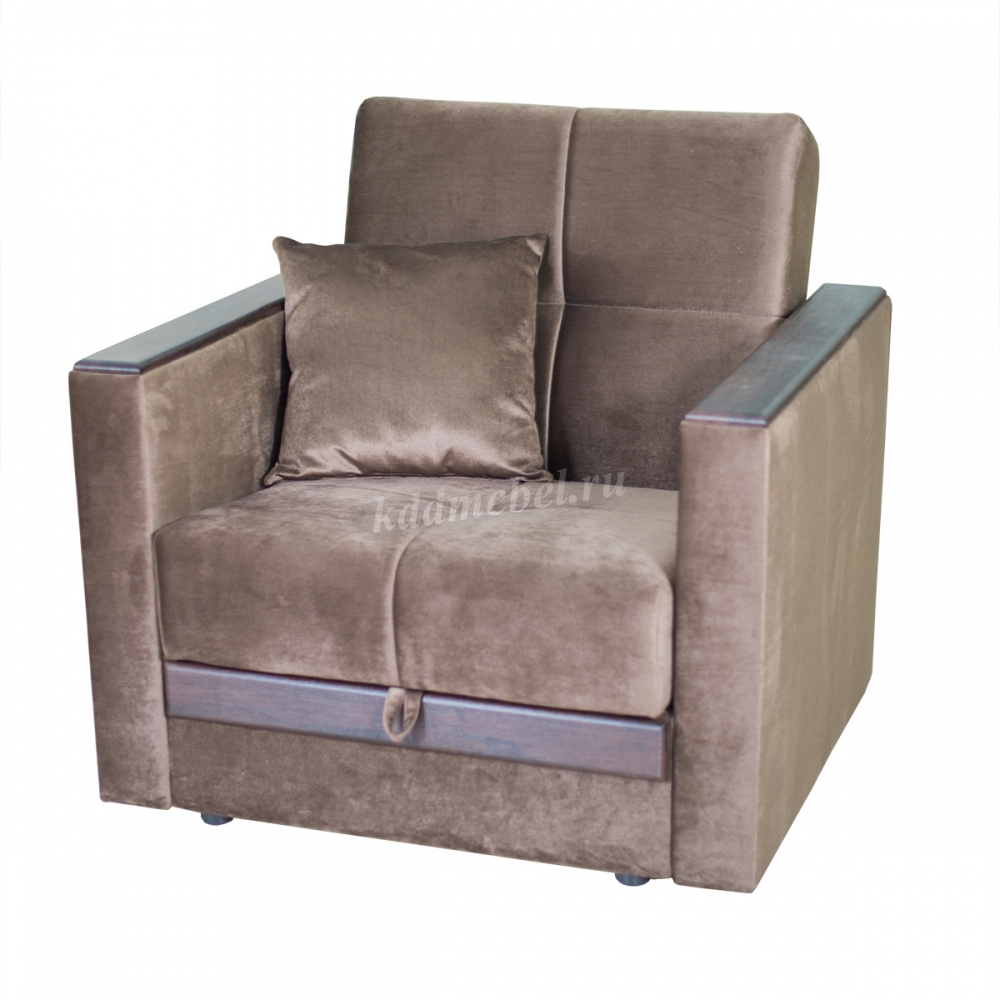 Каркас: изготовлен из хвойных пород древесины 1 сорта ГОСТ 8486-86 имеющих влажность 8-10% , фанеры березовой ГОСТ 3916.1-96, ЛДВП Настил мягких элементов: пружинный блок "BONNEL" Особенности: Кресло к комплекту мягкой мебели Бетти. Бюджетная модель, имеет большой короб для постельных принадлежностей. Подлокотники оснащены МДФ цвета "венге". Подушка включена в комплект. Если к разложенному креслу подставить пуф, то образуется спальное место. Пуф преобретается отдельно. г. Екатеринбург.