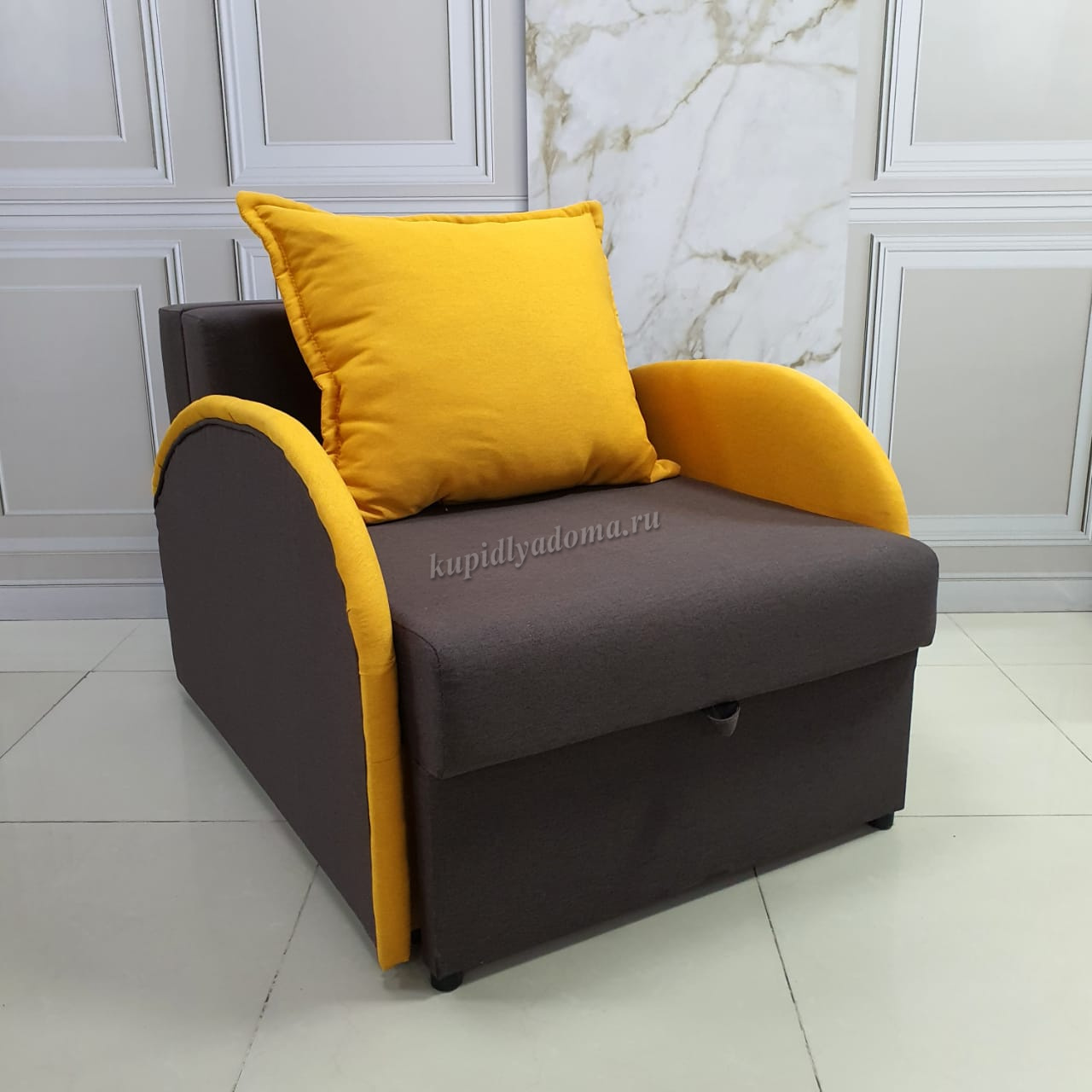 Универсальное одноместное кресло-кровать. Отличное решение для маленькой квартиры или детской комнаты. Удобная, компактная модель, легко трансформируется в односпальную кровать.