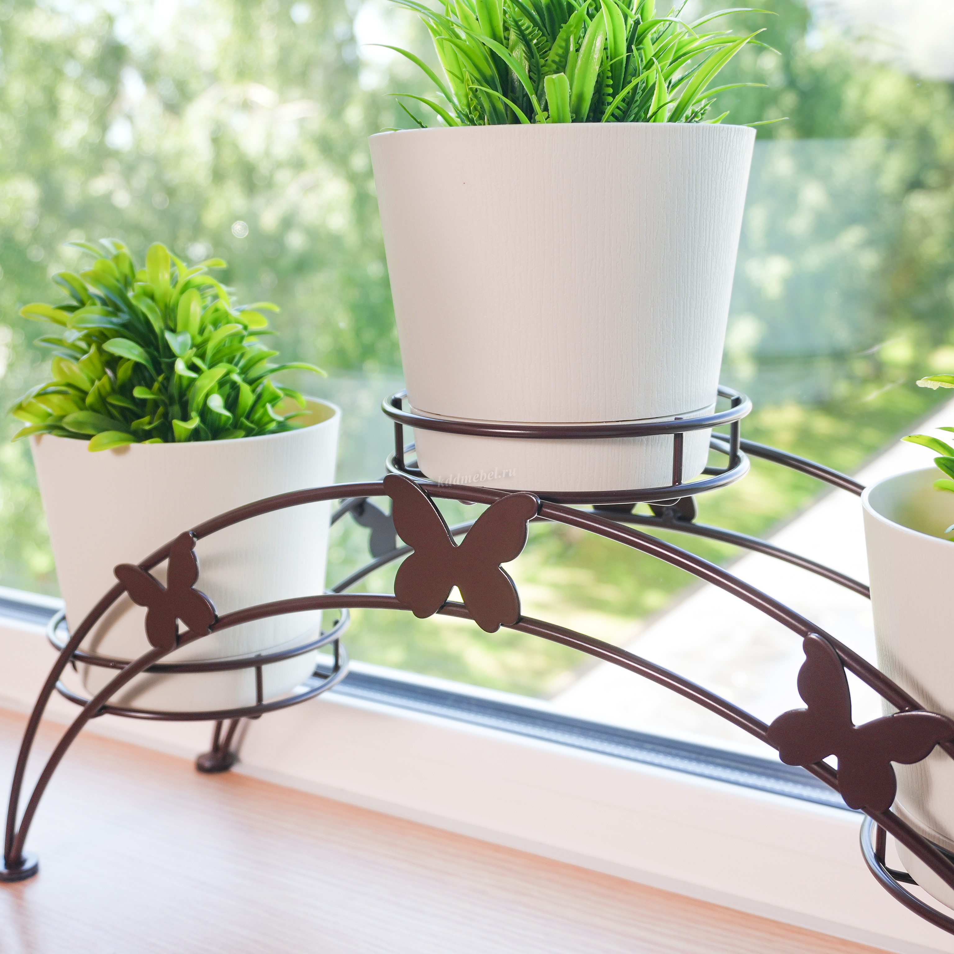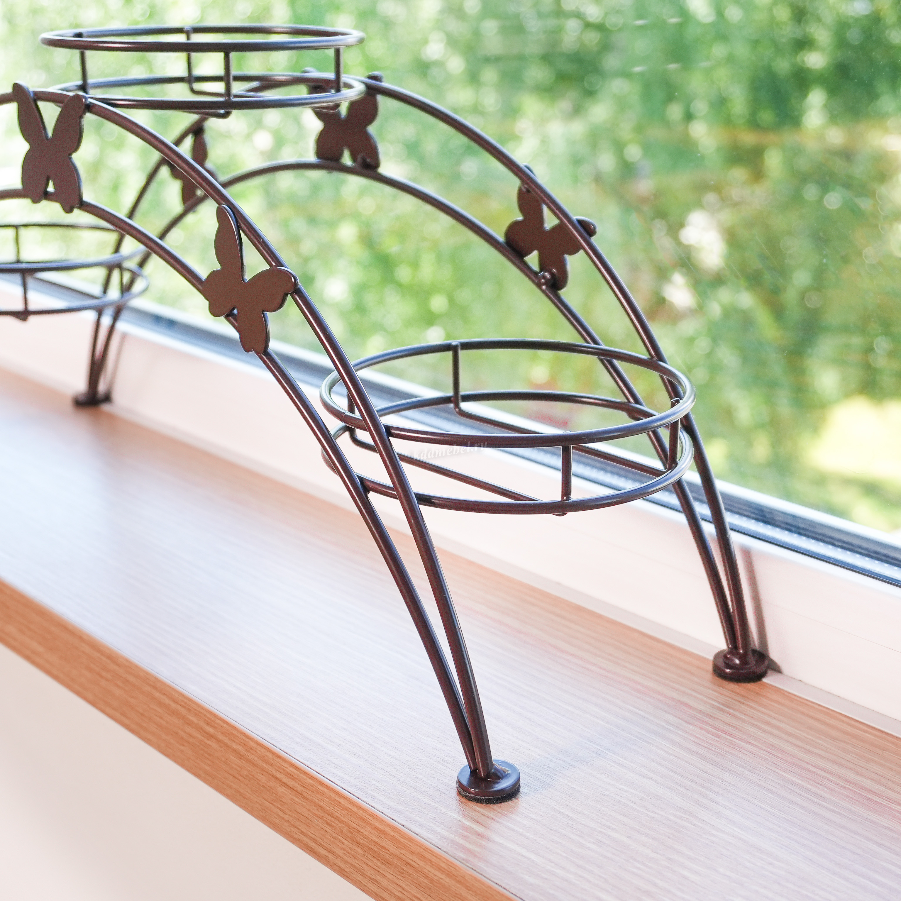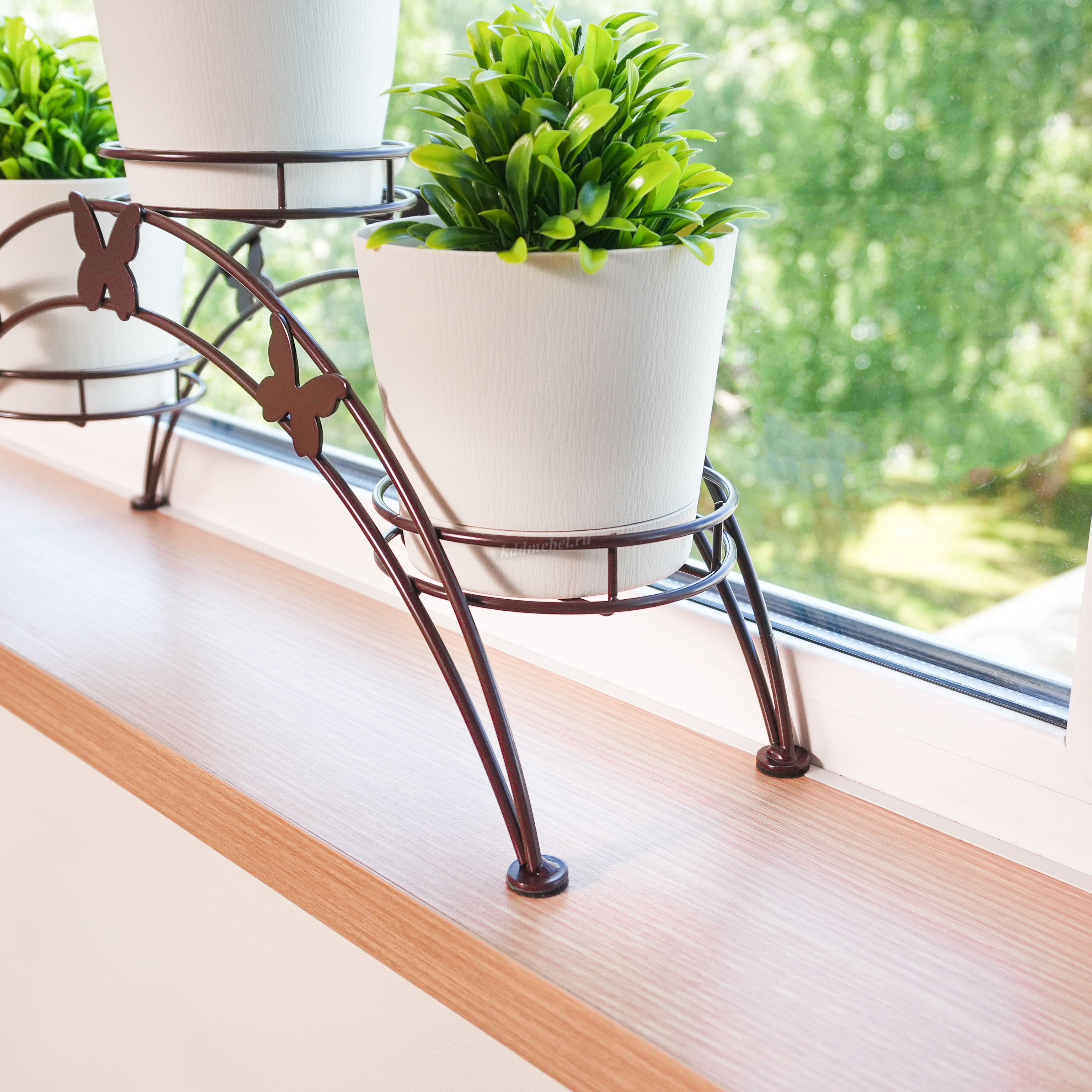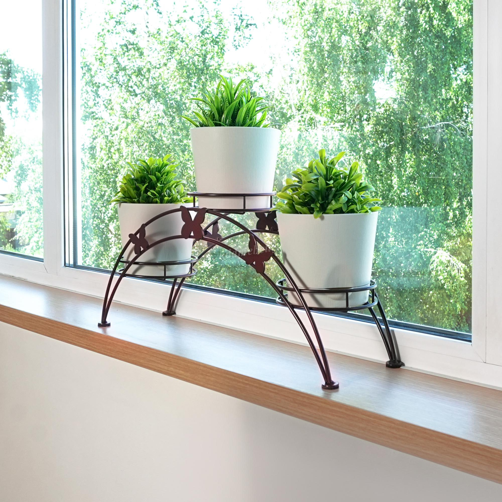 Подставка для цветов "Арка-3" подходит для размещения на подоконнике. Ваш подоконник будет выглядеть гораздо приятнее с оформленными цветочными горшками в корзинки подставки. Цветочница долговечна, надежна и проста в уходе. Данное изделие полностью безопасно в использовании.