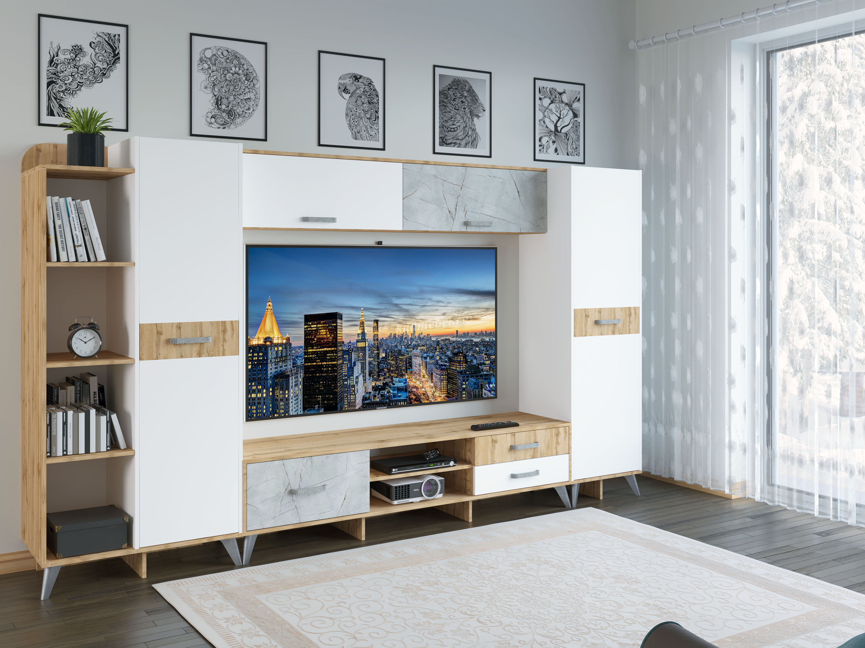 Полка навесная Микс-0.9 (Дуб бунратти/Белый)