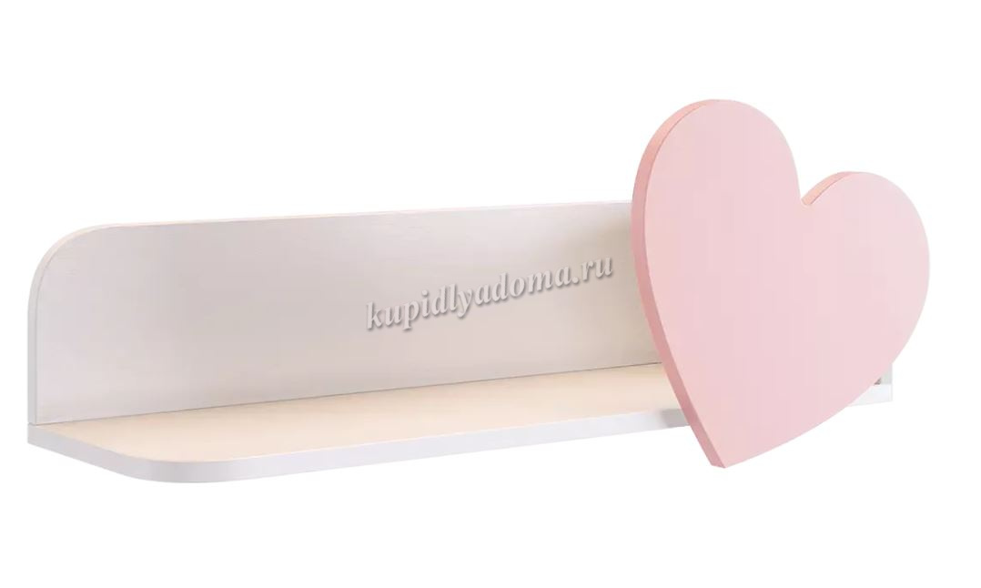 Полка навесная Сердечко (Белое дерево/Пудра розовая) наличие товара:
