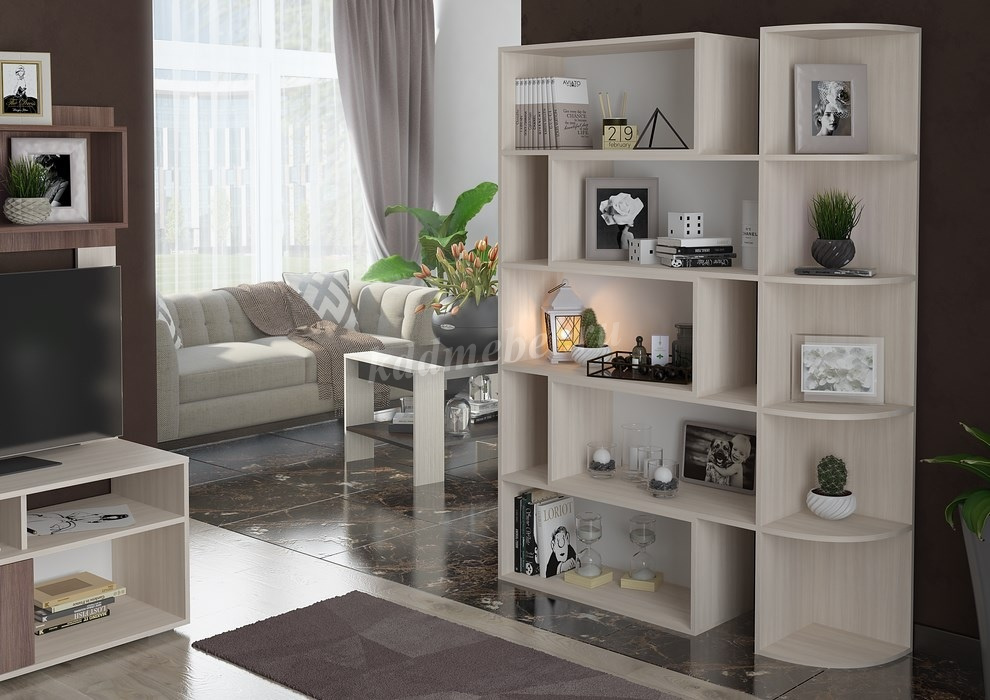 Стеллаж №4 станет гармоничным дополнением интерьера любой комнаты. Изделие оснащено множеством полком, предназначенными для размещения интересных книг, семейных фотографий, небольших вазонов с цветами, а также для различных оригинальных предметов декора. Спокойные и приятные тона придадут роскошь и уникальность вашей комнате. Такая модель удивит вас своей функциональностью, дизайном, а также вместительностью.