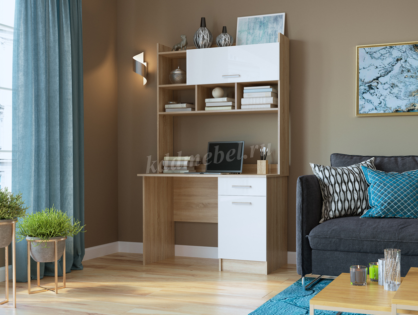 Стол компьютерный ПКС-2 (Дуб сонома/Белый глянец)