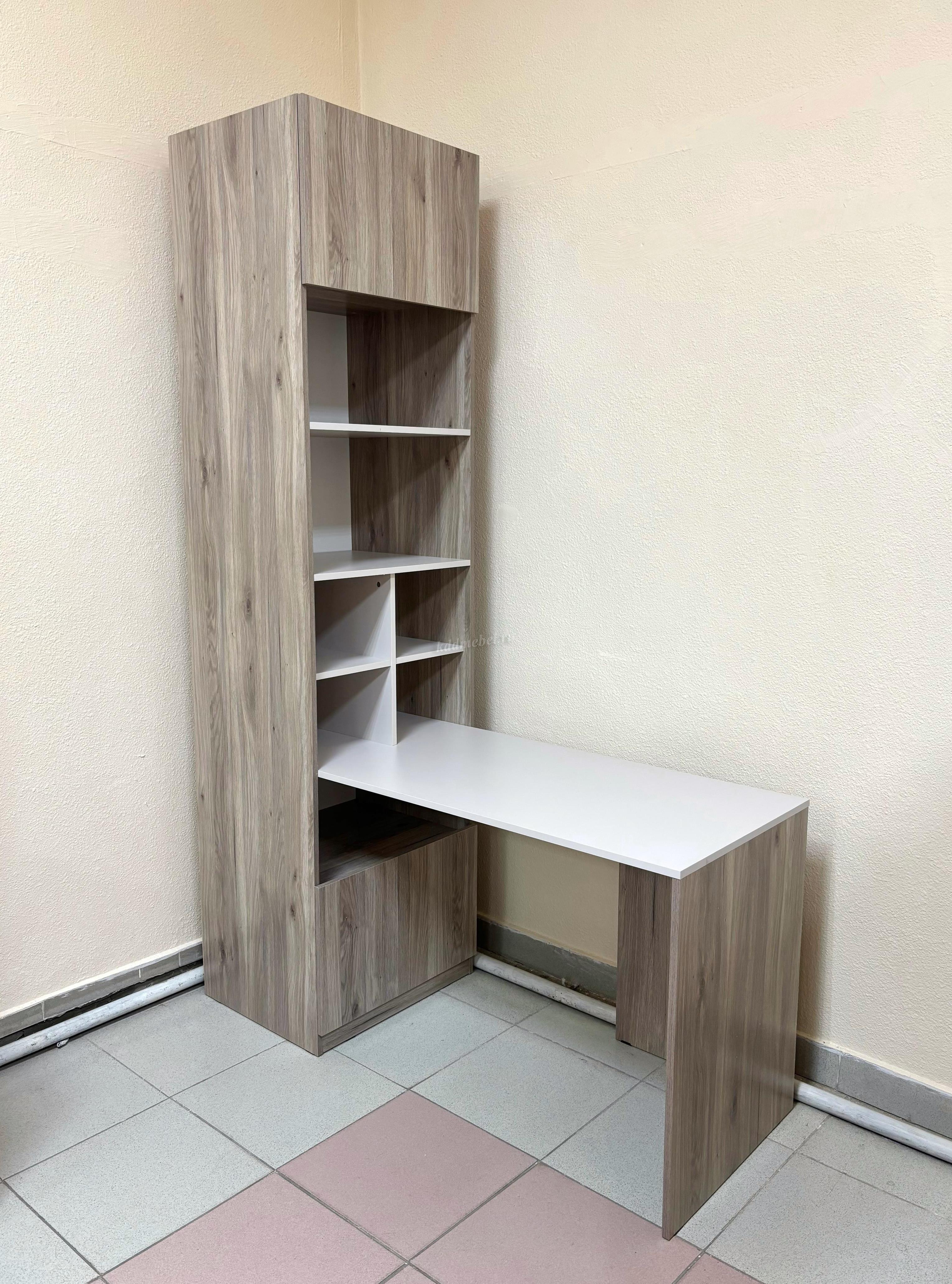 Стол-шкаф Урбан – это минималистичная стильная модель, которая подойдет для учебы и работы. Особенность данной модели – встроенный вертикальный блок с полками для хранения книг, документов и техники.
